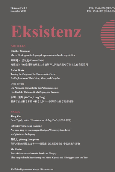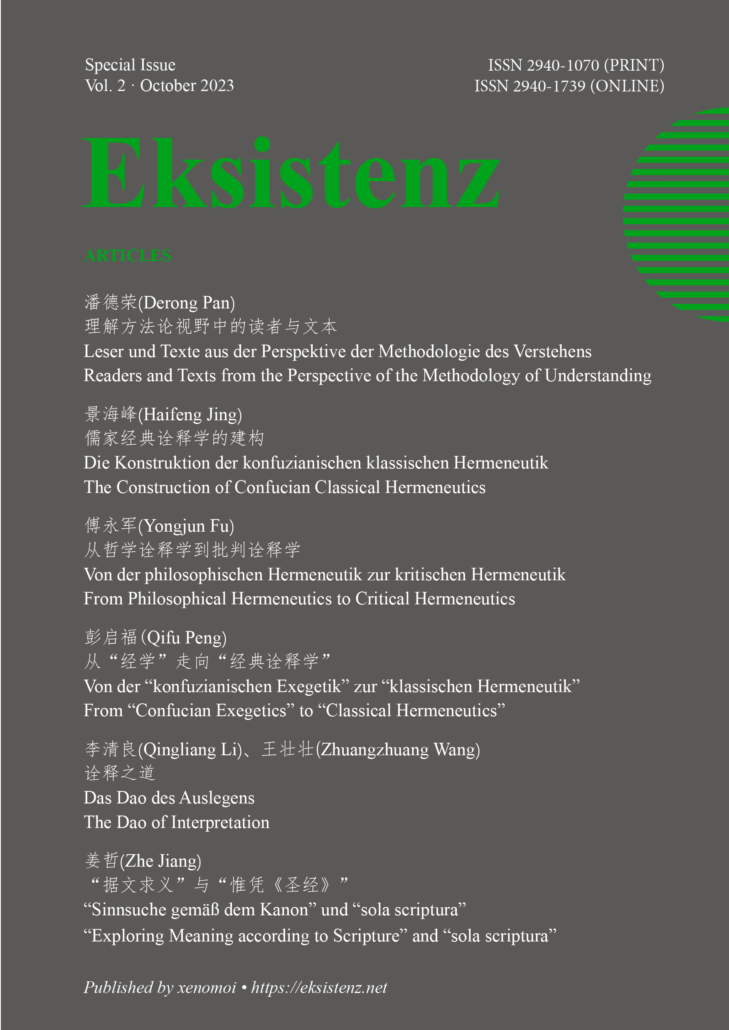 Vol. 2 was published in Dec. 2023, Online and in Print, Berlin: Xenomoi. Issue on "Hermeneutics and Ethics". Contributions by Deng Xiaomang, He Weiping, Wang Hongjian, Niu Wenjun, Thomas Sheehan, Steven Crowell, and Hans-Ulrich Lessing.